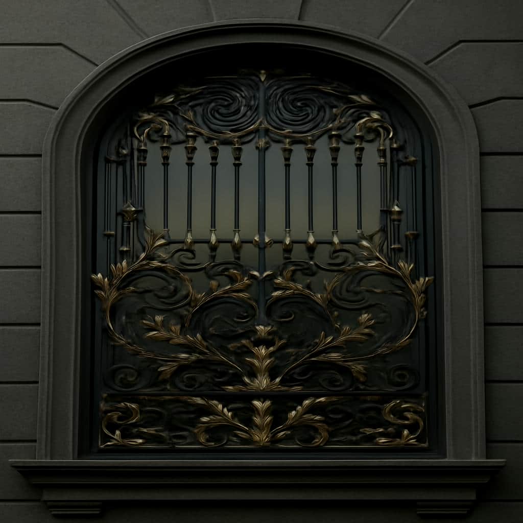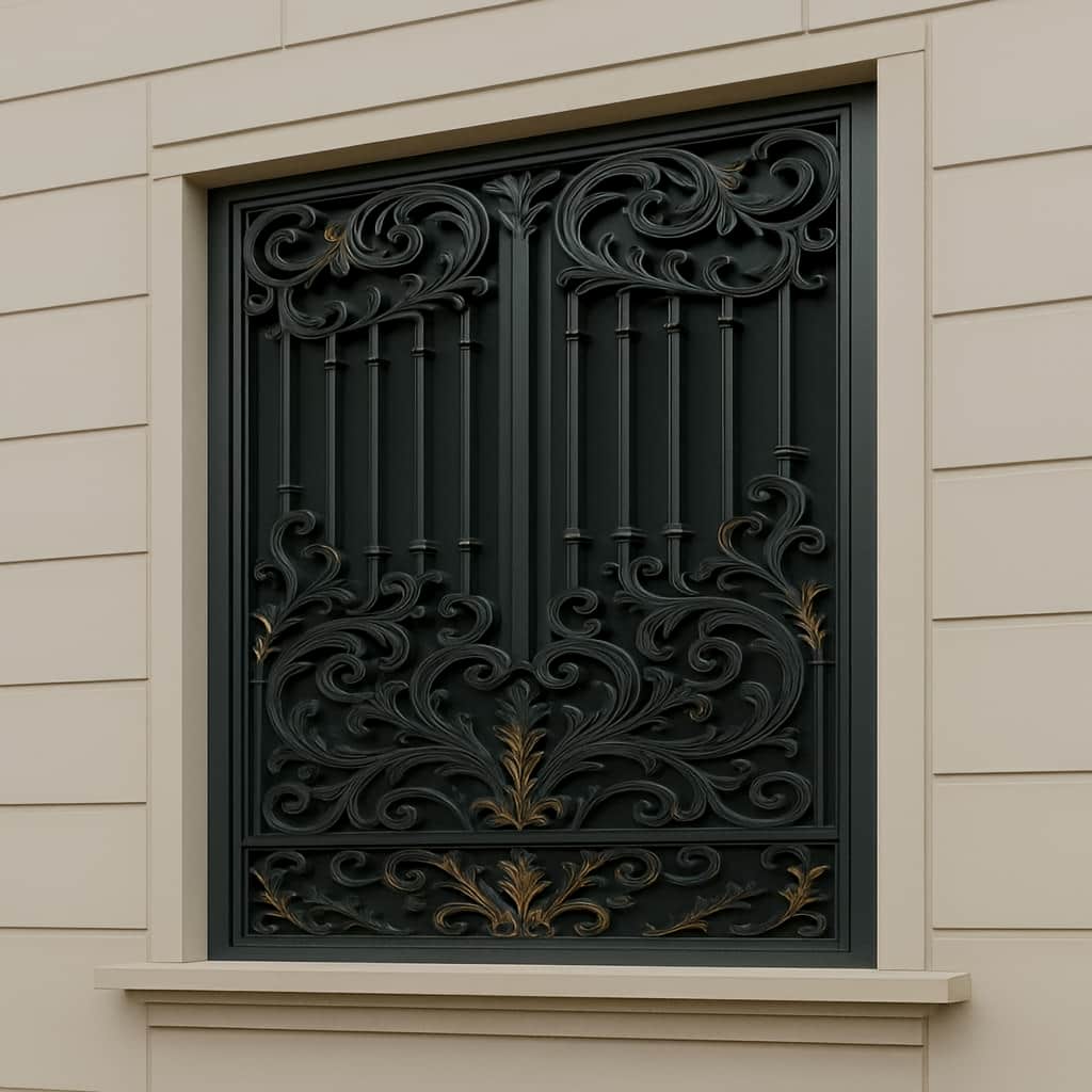 ساخت با آهن فرفورژه ضربه خورده و ورق S355 امکان اجرای نقش های پیچشی و گل برگ های حجمی را فراهم می کند و امنیت و زیبایی نمای کلاسیک را هم زمان افزایش می دهد.
